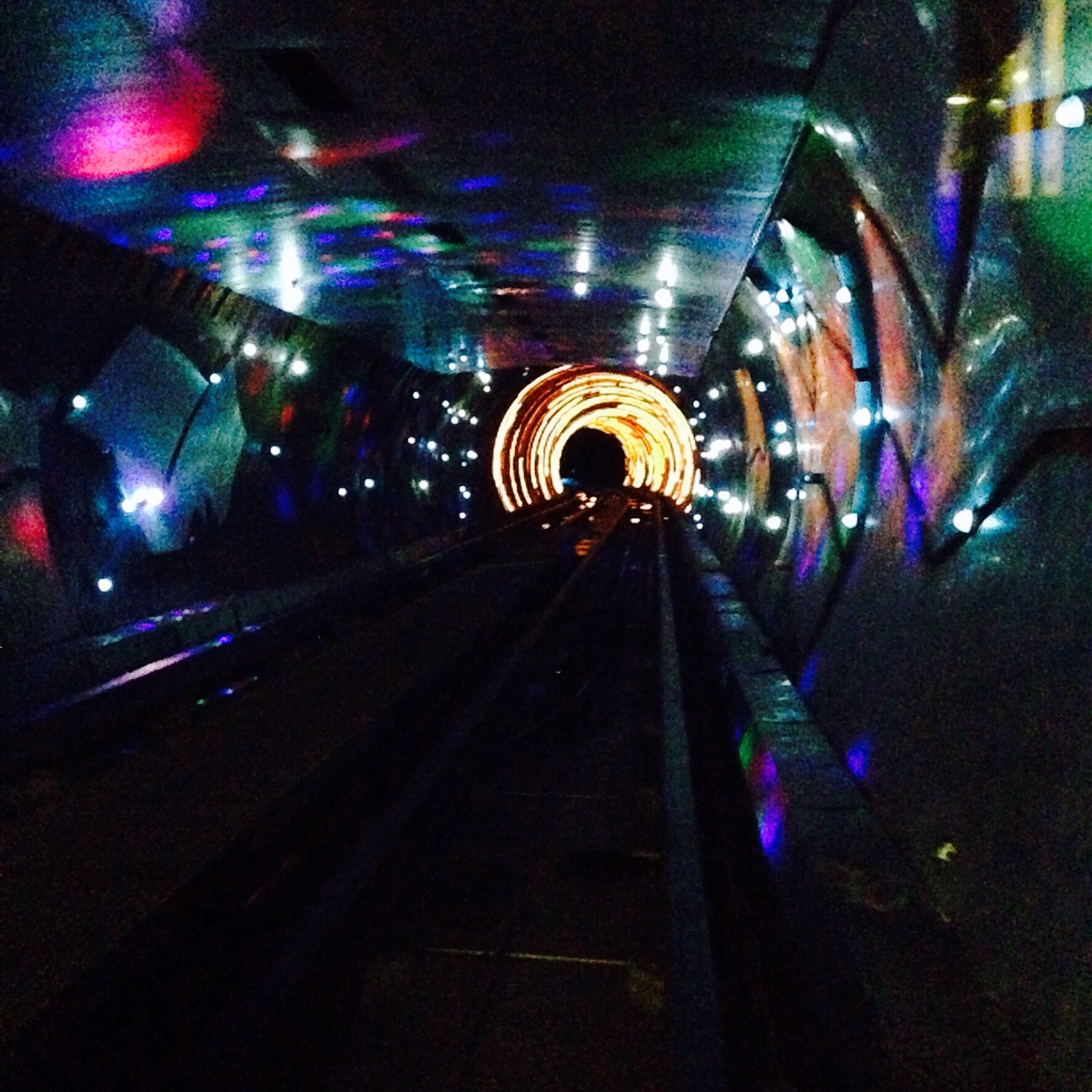 There aren’t many bridges across the river in the downtown area but several of the subway lines connect the two sides underground. The subway’s cheap at just 3 Yuan (30p) to get across the river, but if you feel like splashing out a whole 50 Yuan, there is another way. The Sight-Seeing Tunnel is a bonkers ride through a Willy Wonka-esque neon-lit tunnel.