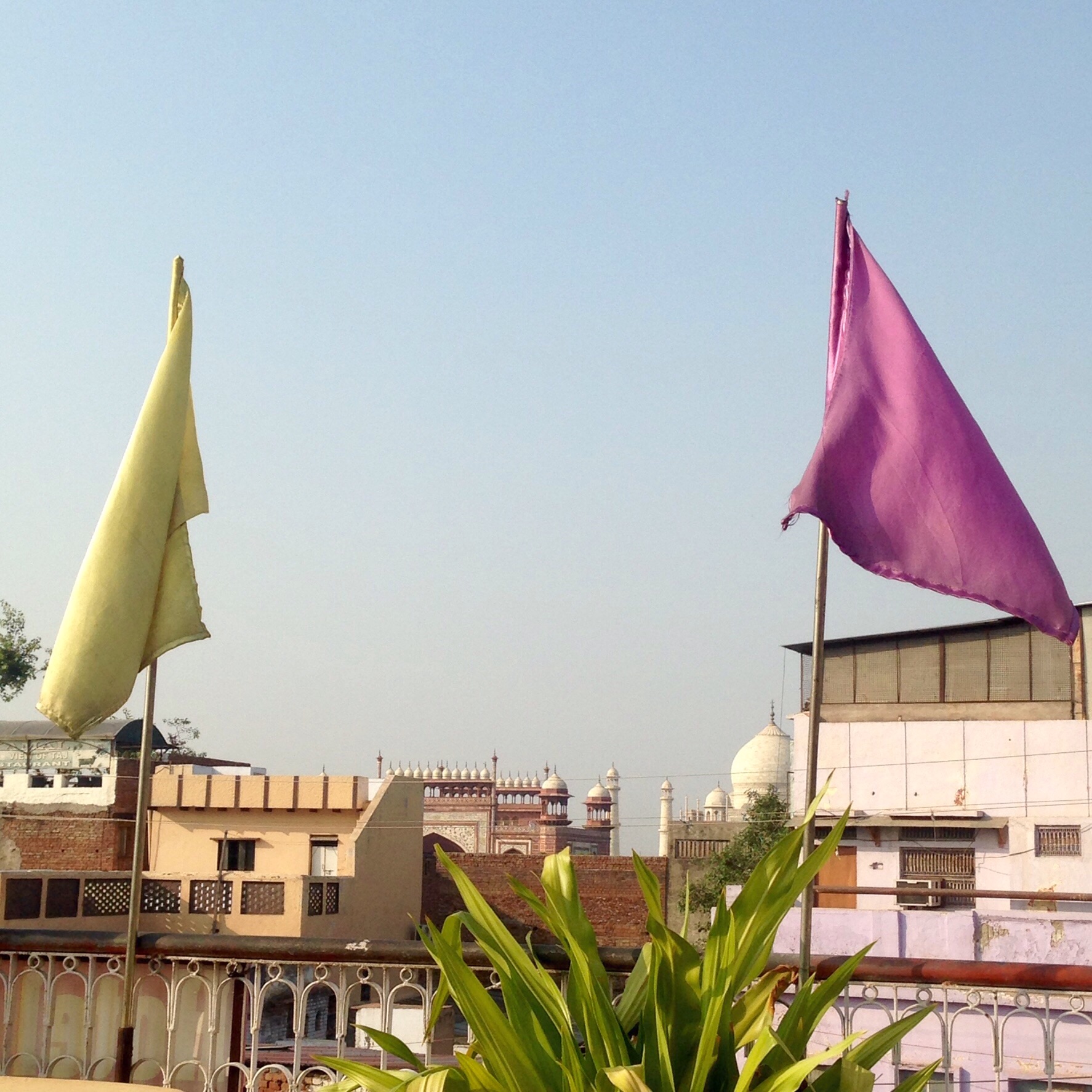 First, we followed Lonely Planet’s tip, Saniya Palace (so hard not to add inverted commas around the word palace there), and caught our first sight of the amazing monument in the distance. The main thing obstructing our near-perfect view was another roof terrace 20m in front that clearly had a better one. Ok, on to the next. From here we realised we were the subject of some tourists’ zoom-lens photos of the city taken from an even better vantage point! We hastily finished our drinks and headed up to the terrace of Hotel Shanti Love which, we would say, deserves the ‘Best Taj View in Agra’ crown.