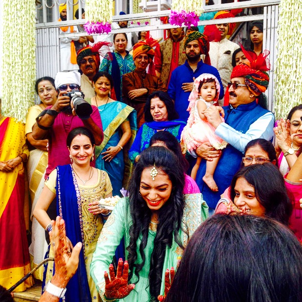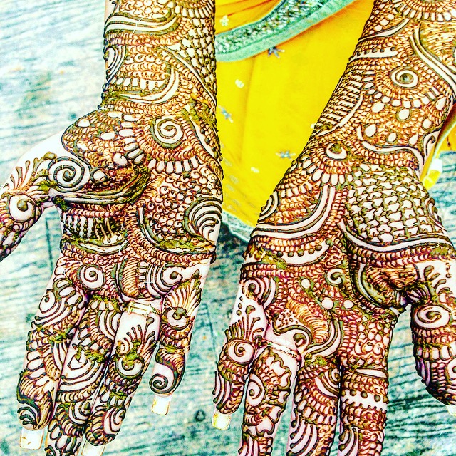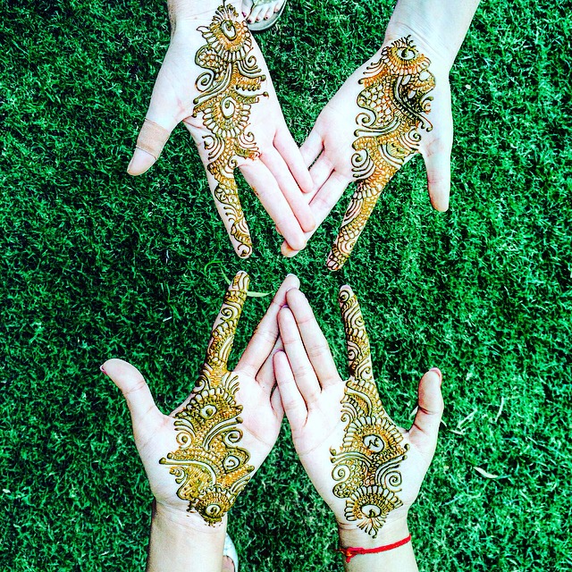 The most elaborate design is reserved for the bride; Divya had an amazing intricate pattern reaching from her fingertips up to her elbows. The henna artist traditionally hides the groom’s name in the design. The idea is that he has to find each letter on the wedding night. Could make for a pretty awkward conversation if the henna artist misheard his name…