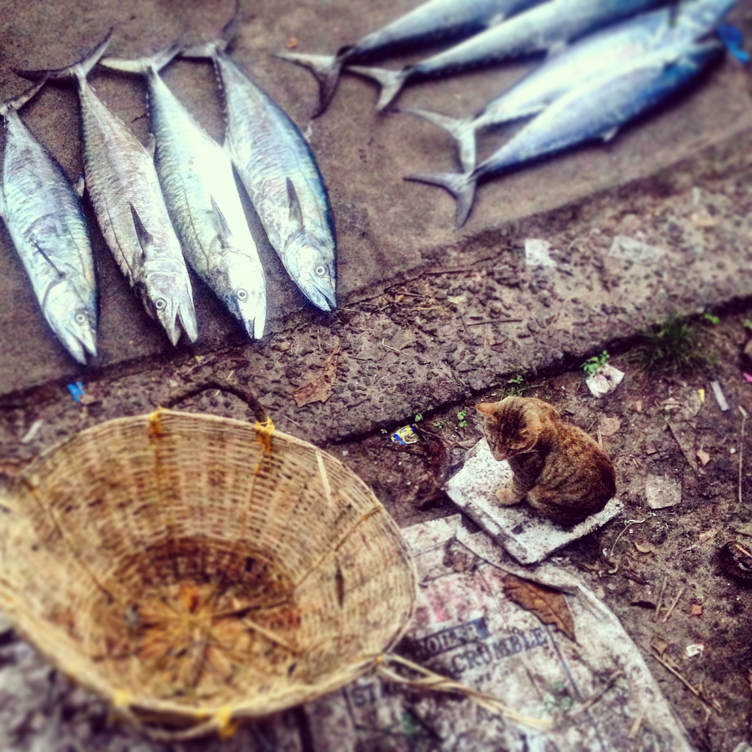 All the action was happening at Mahatma Gandi beach on the north coast in the Fort Cochin area. The edge of the water is lined with the same Chinese fishing nets we’d seen on the saltwater backwaters, and each evening groups of men (and stray cats) gathered to haggle over the day’s catch being auctioned off.