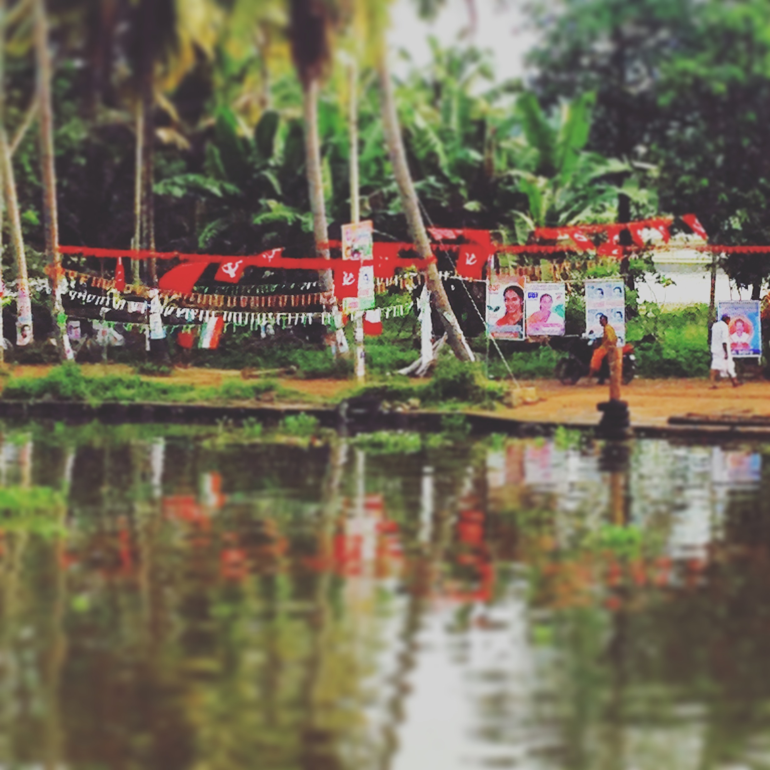 Mr. Manny was a pretty talkative driver, mostly on his phone as he sped into to a blind corner, one hand on the wheel, but he was also happy chatting to us about Kerala; it has a 94% literacy rate (the highest in India), is a dry state (although we could definitely make a stop at a ‘beverage shop’ if we wanted…), and had the world’s first democratically elected Communist government. The red flag is still flying high in Kerala; we saw socialist graffiti and election posters in Ernakulam, red flag bunting strung between coconut trees along the backwaters, and a party march in a small hillside town on the drive back from Thekkady.