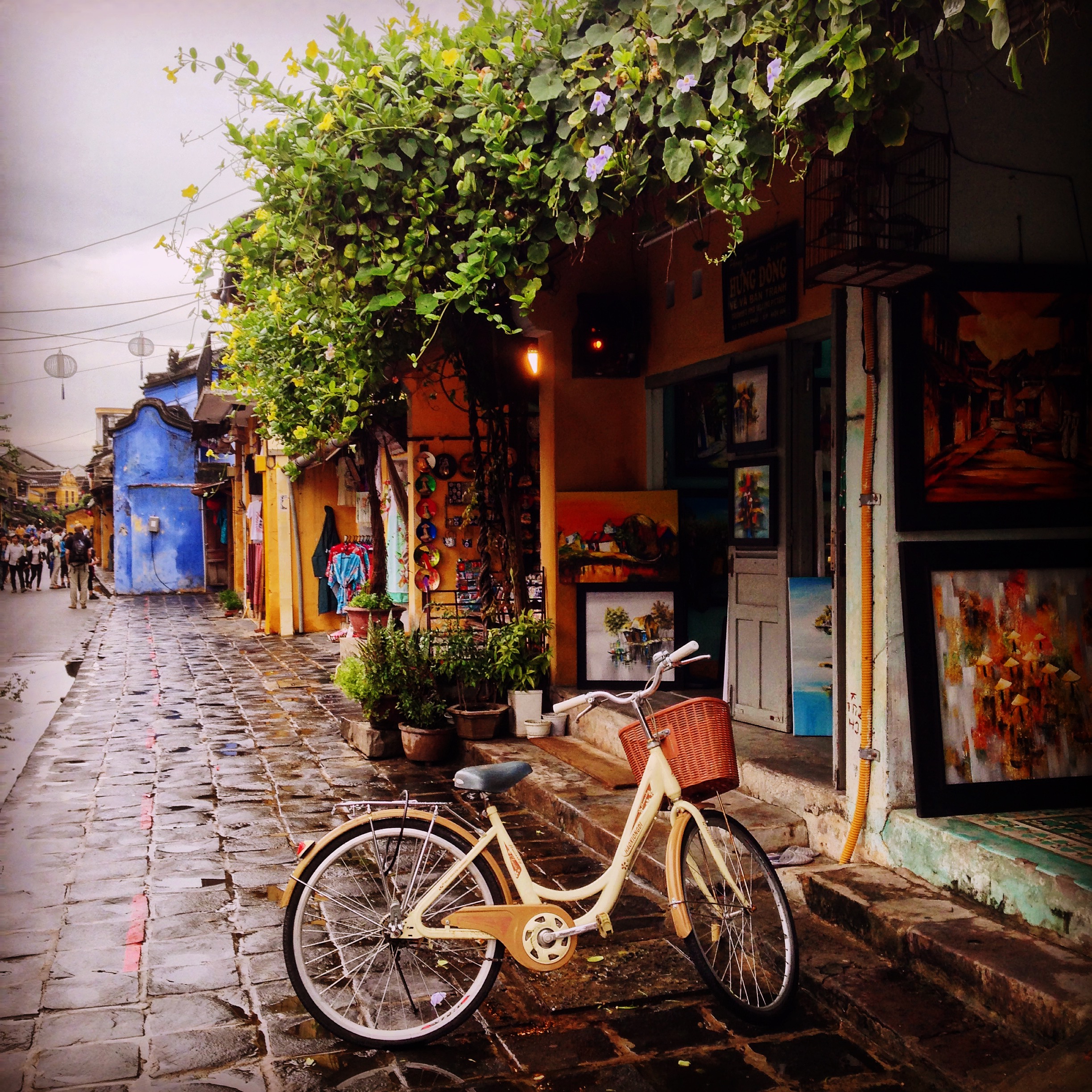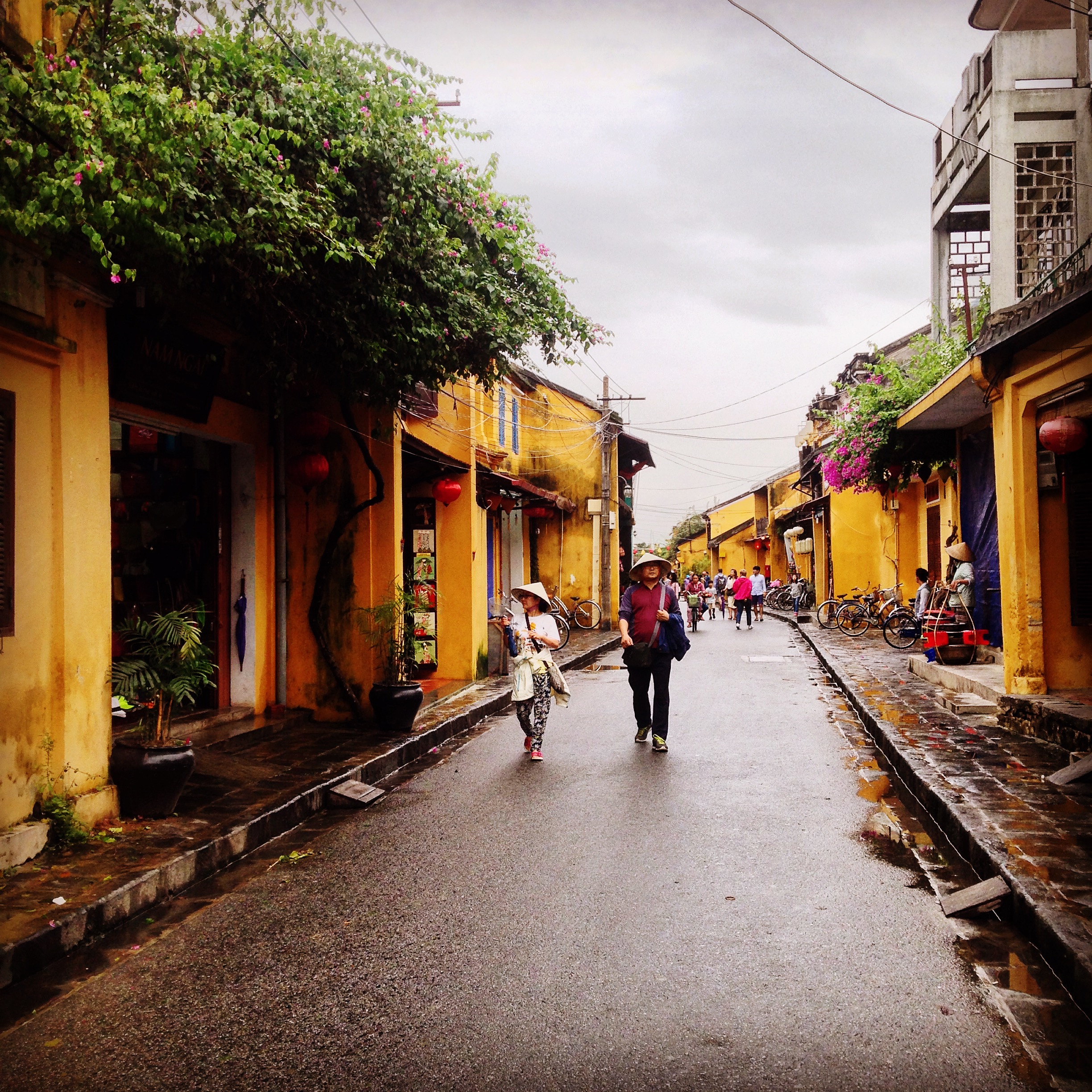 Hoi An managed to look good even under heavy grey skies and a misty drizzle. Streets were lined with flowering trees and trailing vines, set in front of ageing mustard yellow buildings, interspersed with ancient buildings belonging to Hoi An’s trading families, whose great great grandchildren now run as museums and tea shops. At night, the streets are lit by strings of colourful paper lanterns.